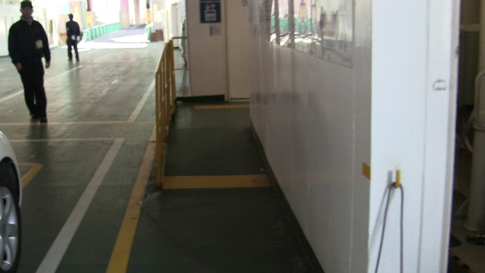 車に乗ったまま船へ乗り船内で車椅子へ乗り展望デッキへ出られます。