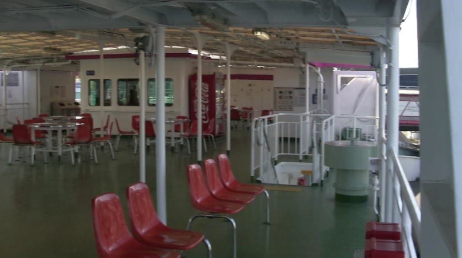 今回は観光でしたので、展望デッキへ上がりましたが乗船から下船まで車を降りずに島へ渡ることができるということです。